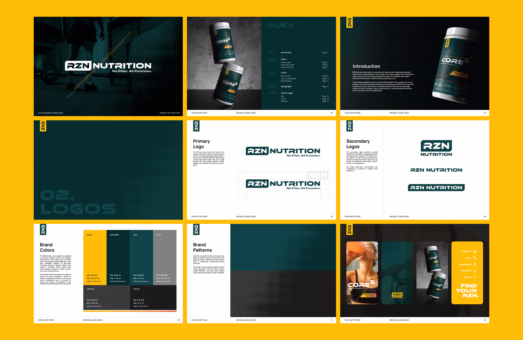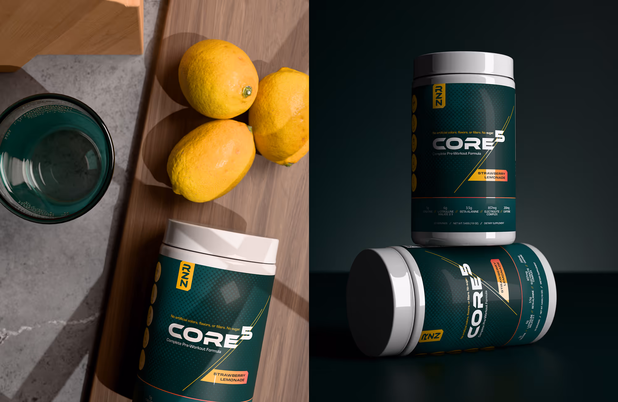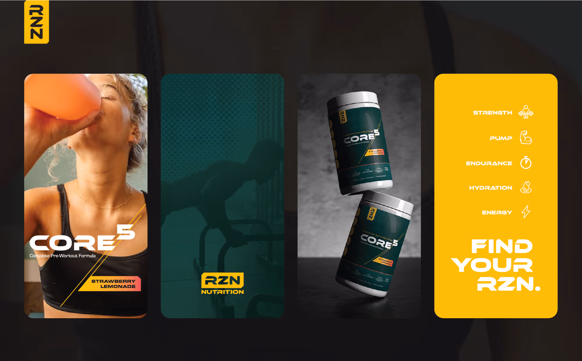 RZN Nutrition set out to challenge the overstimulated, over-engineered supplement space with a cleaner, more intentional approach to performance. We developed a modern brand identity and product system for their flagship pre-workout, Core5—focused on clarity, trust, and functional performance. From packaging design to visual direction, every element was crafted to communicate simplicity, transparency, and confidence for athletes who care about what goes into their bodies.