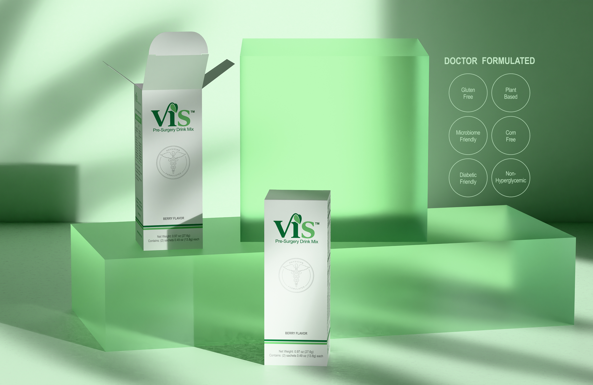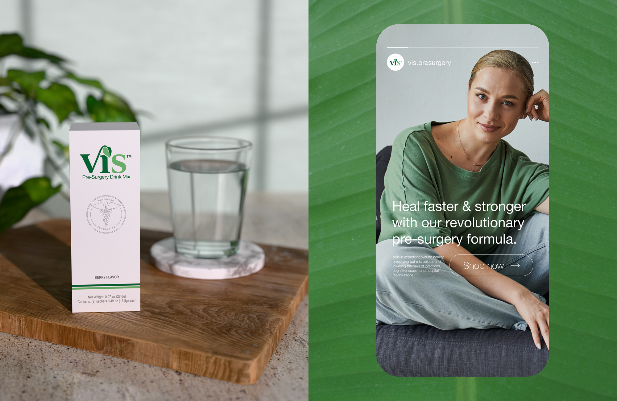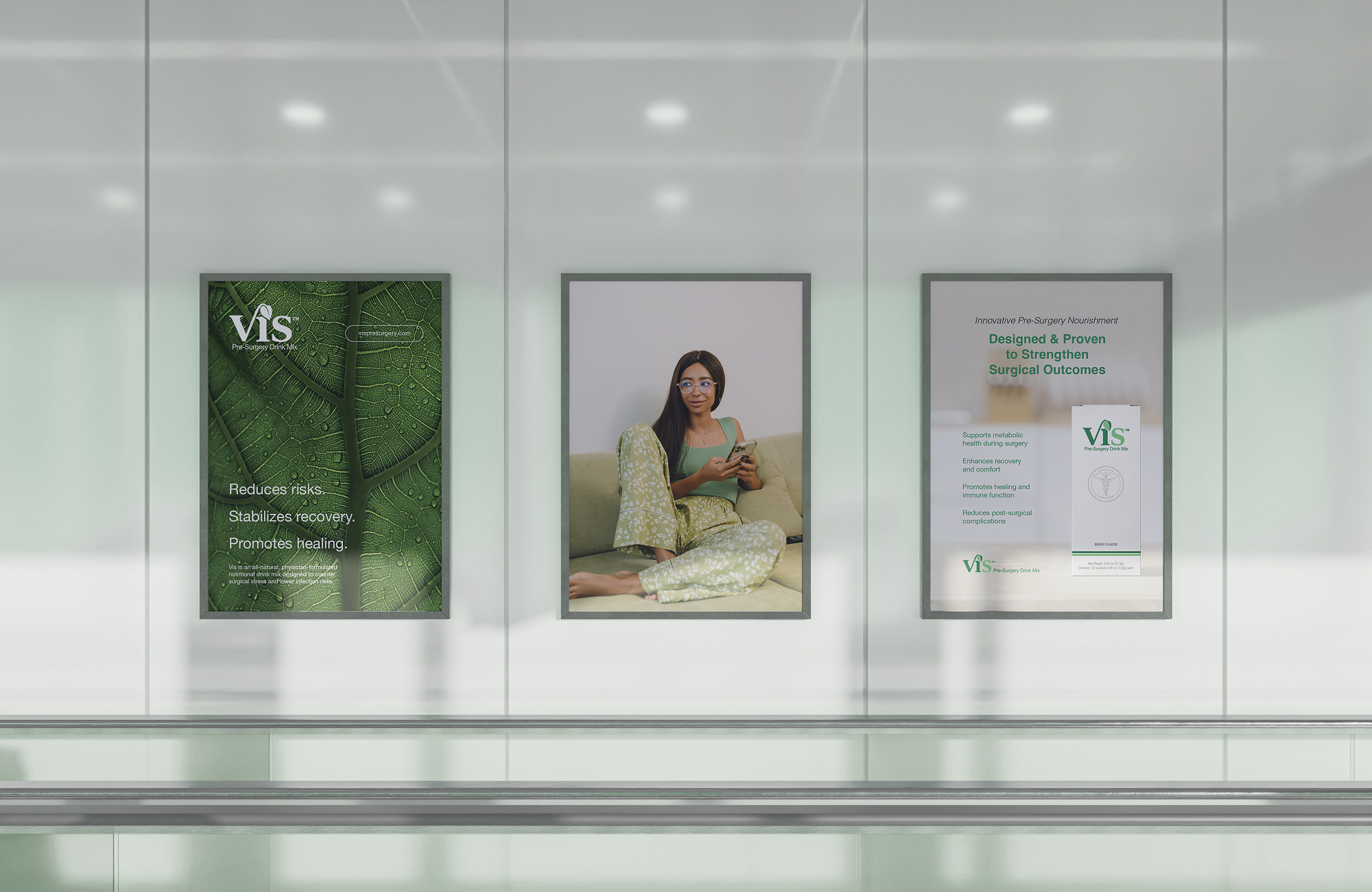 Vis came to us with just a logo and a color palette—we built everything else. From stickpack and box packaging to surgeon-facing print materials and brand guidelines, we created a clean, professional system that felt both clinical and approachable. Designed for hospital settings but made to resonate with patients too, every piece strikes a balance between medical clarity and modern wellness branding.